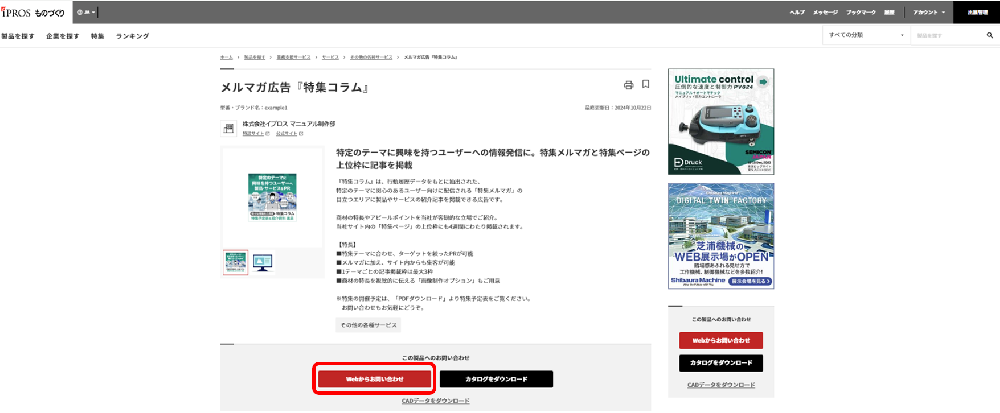 お手数ですが、イプロスの各ページに記載されている取り扱い企業様にご請求ください。