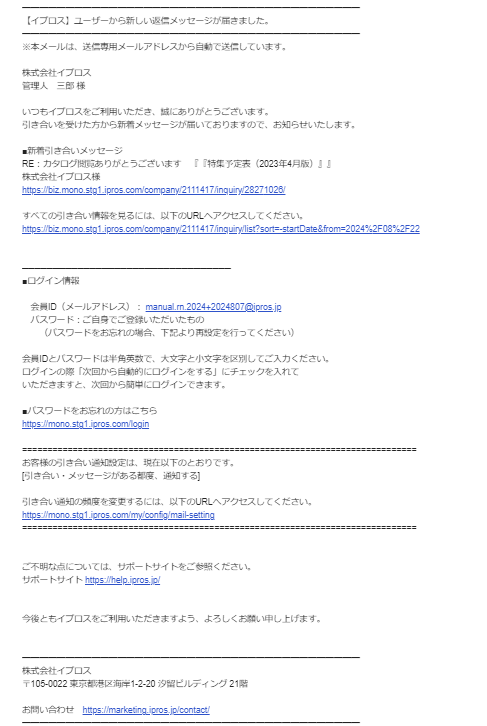 1.ログイン後、ヘッダーの《 メッセージ 》をクリックします。