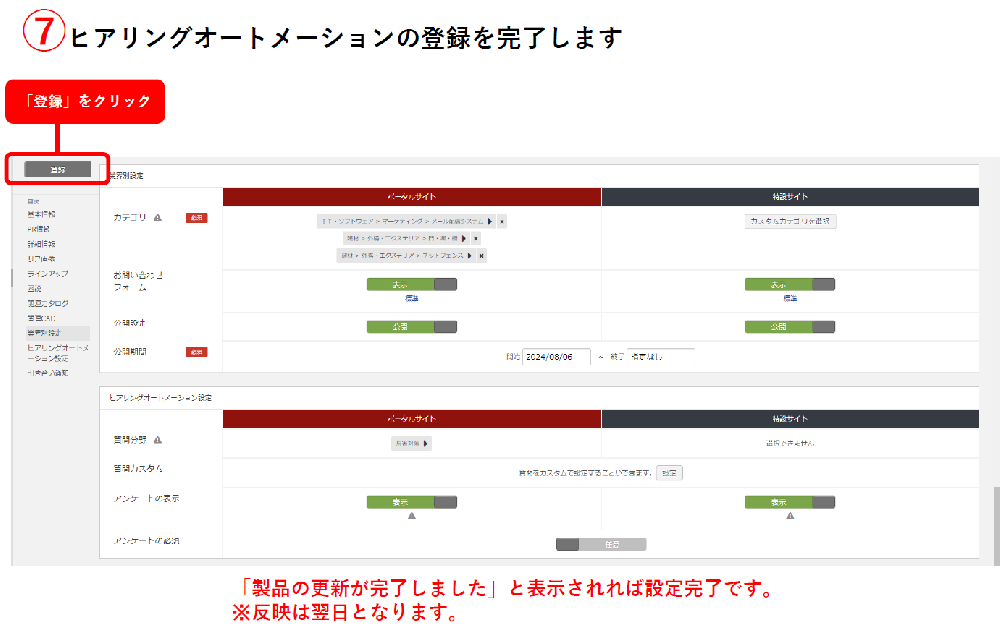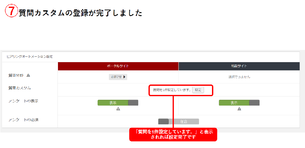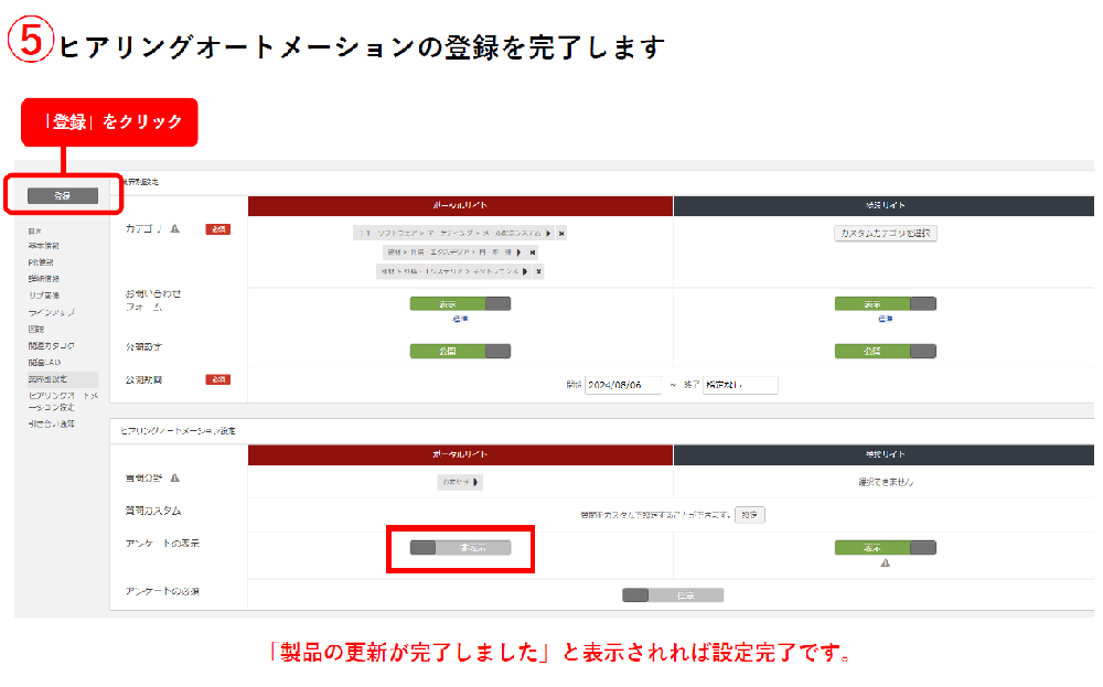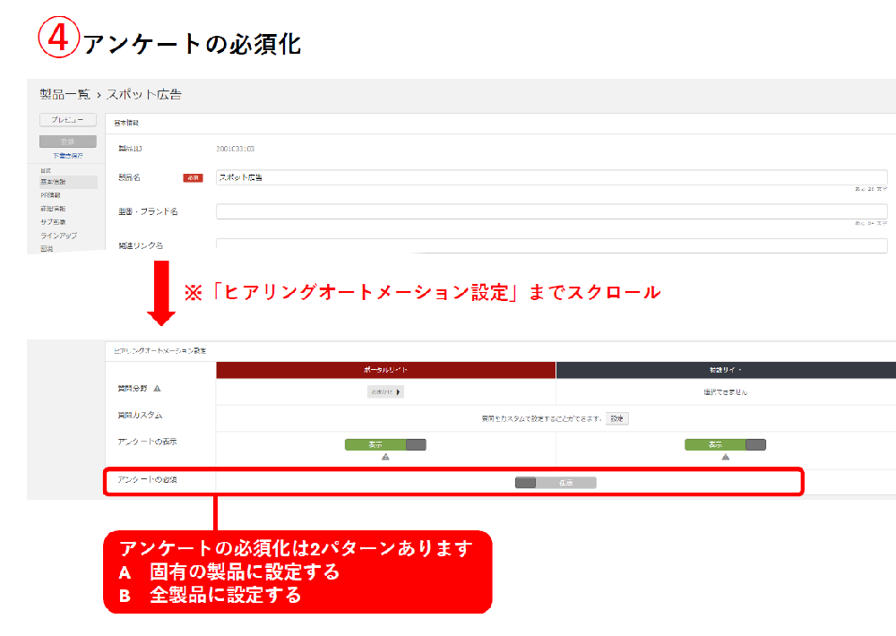 | アンケート必須化の設定 | 販促支援2024の契約が必要です。 |