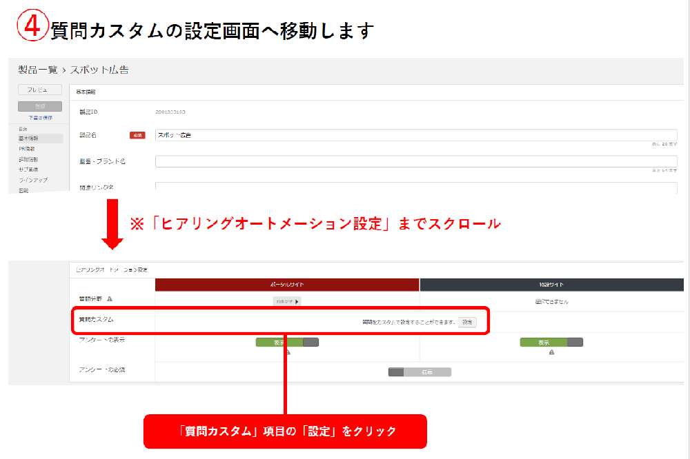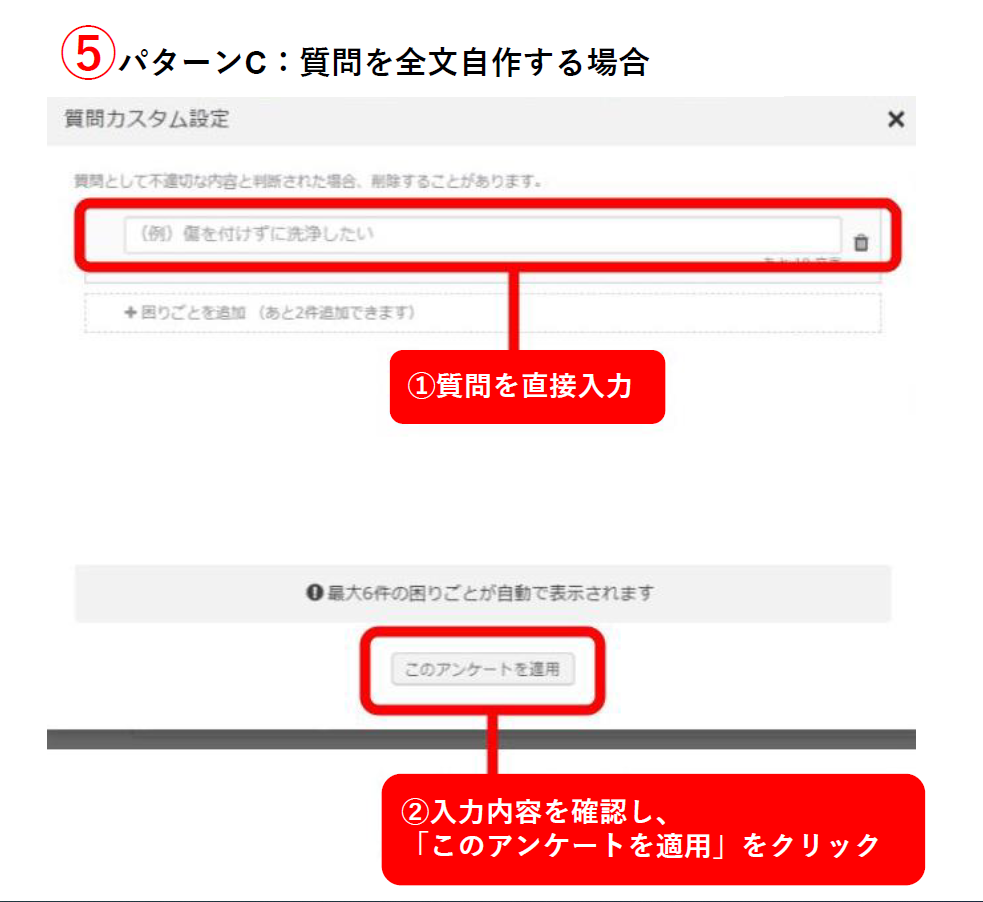 | カスタム質問の設定 | 販促支援2024の契約が必要です。 |