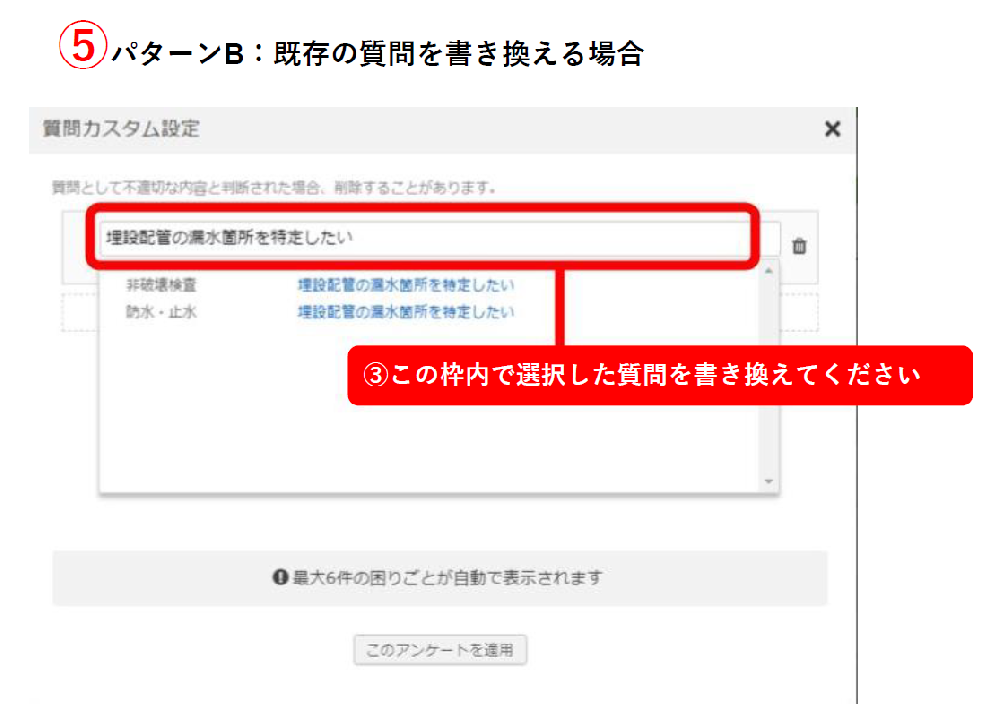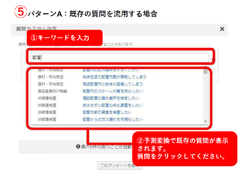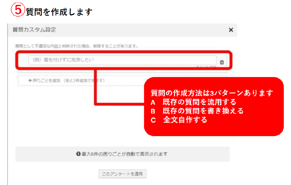 アンケートで困りごとを獲得するための質問に関する設定です。