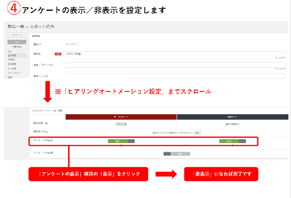 | アンケート非表示化の設定 | 販促支援2024の契約が必要です。 |