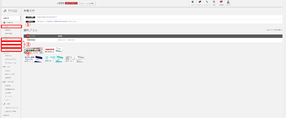 ④ ダウンロードファイルカタログページの確認・編集はこちらから行えます。