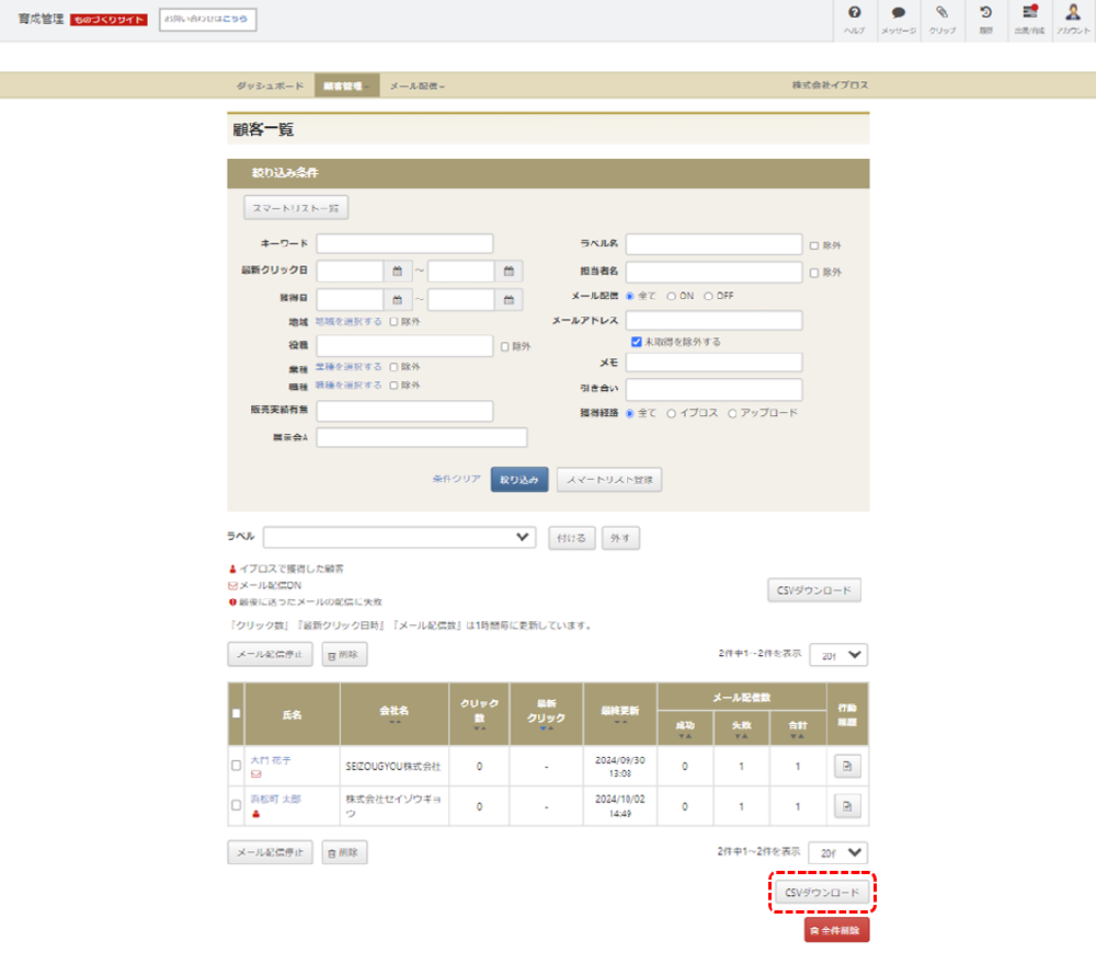 2.《 顧客管理 》 の「 顧客一覧 」 をクリックします。