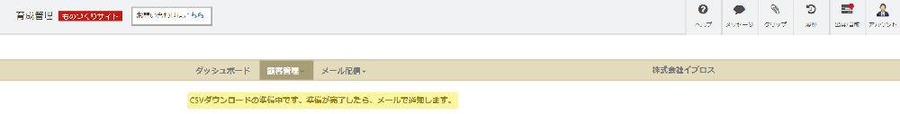 4.顧客情報のリストの上部にある[ CSVダウンロード ]ボタンをクリックするとダウンロードの準備が開始します。