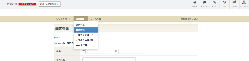 2.《 顧客管理 》 の「 顧客登録 」をクリックします。