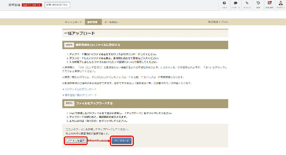 6.「 STEP2 」 欄で保存したCSVファイルをアップロードします。