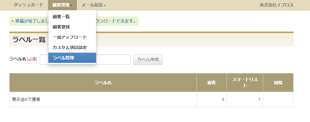 2.《 顧客管理 》 の「 ラベル管理 」をクリックします。